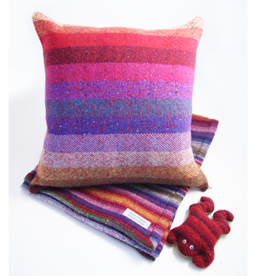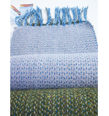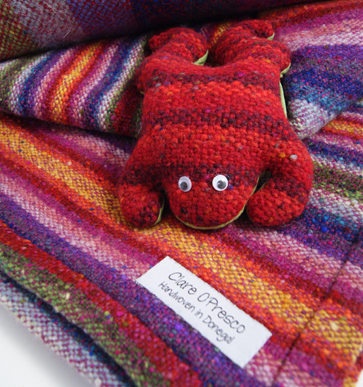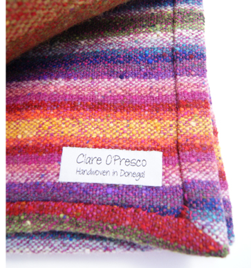 Artist's ProfileIn Clare’s studio at Donegal Craft Village you can see for yourself Donegal tweed being hand-woven on a traditional Donegal loom. After graduating with a BA (Hon) degree in woven textile design Clare moved to Donegal to fulfil her desire to create a modern version of Donegal tweed using traditional methods and local yarns.Clare also 'paints with wool' on a loom using hand carded fleece. Blending the wool fibres by hand creates the wide ranges of colours used in Clare’s original tapestries. Commissions are undertaken for that special gift or interior design requirement. |